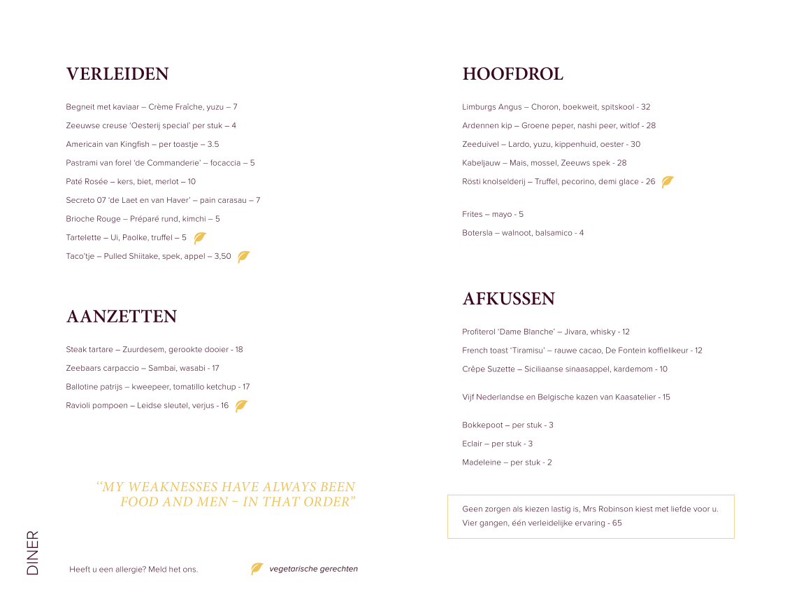 Mrs. Robinson Menu